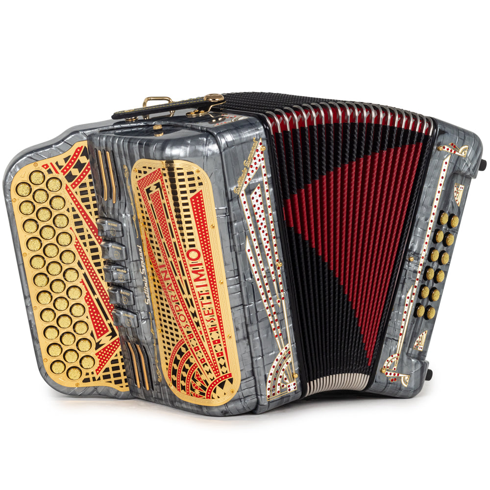 Settimio Soprani Castello II Ultra Compact 5 Switch Accordion EAD Celluloid Gray with Gold and Red