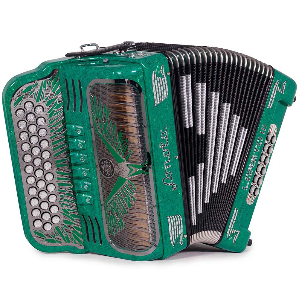 Settimio Soprani Castello II Ultra Compact 5 Switch Accordion FBE Green Glitter with Red White and Green