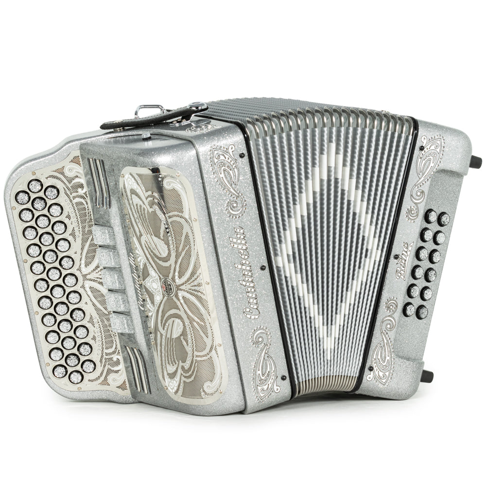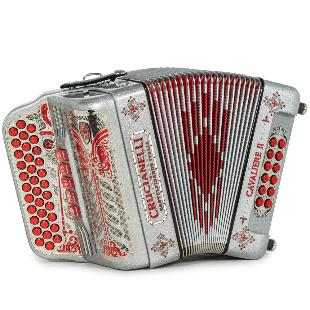 Crucianelli Cavaliere II 5 Switch EAD Ultra Compact Accordion in Silver Glitter with Red