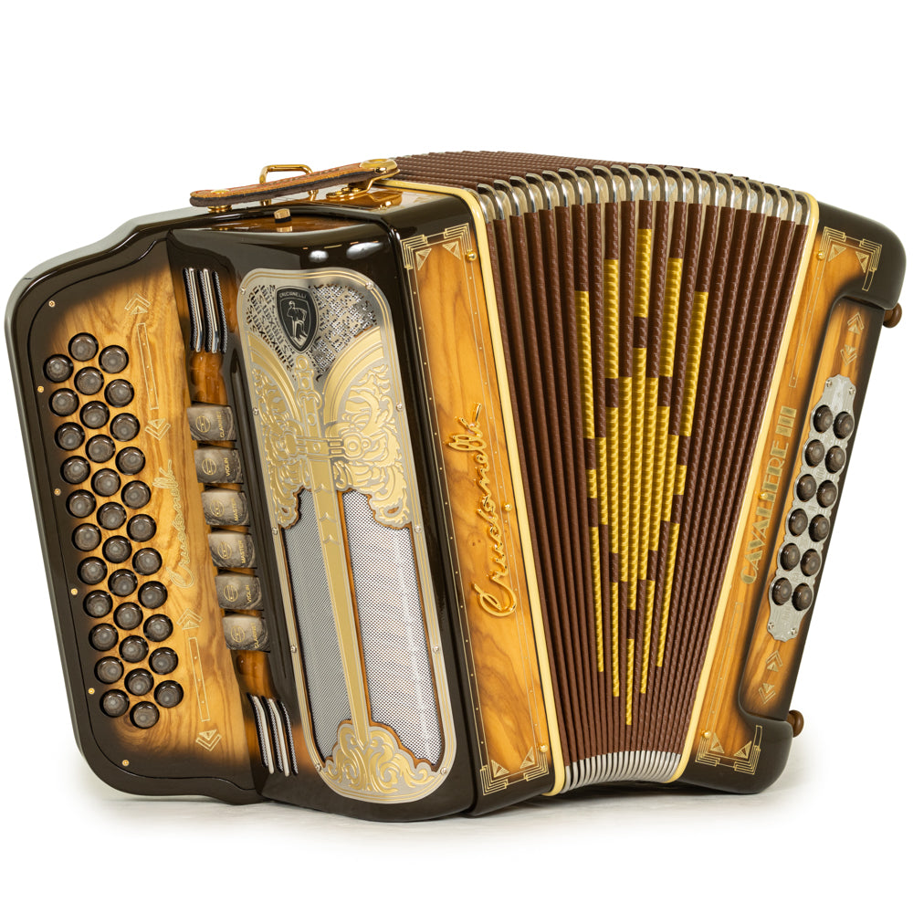 Crucianelli Cavaliere III 6 Switch 2-Tone FBE-GCF Accordion Polished Dark Wood with Gold