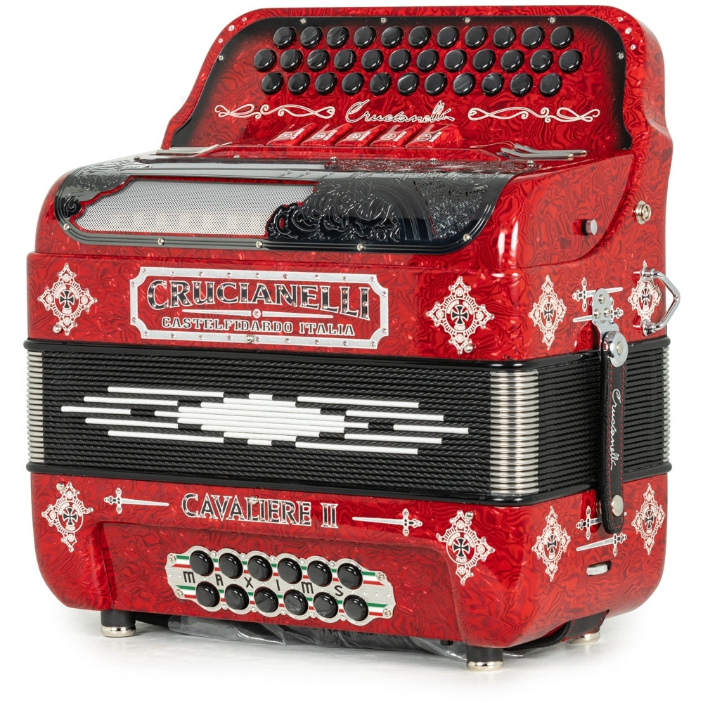 Crucianelli Cavaliere II 5 Switch EAD Accordion in Celluloid Red Waves with Silver