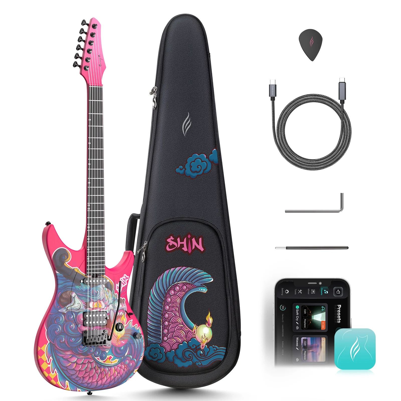 Experience the Enya Inspire smart electric guitar featuring Bluetooth connectivity to the ENYA MUSIC App. Control 20 professional tones and customize 4 onboard presets (Clean, Overdrive, Crunch, Lead) for any music style. The SH pickup system delivers crisp single-coil clarity and powerful humbucker drive. Connect to iOS, Android, Mac, or PC for wireless control and direct USB-C recording.
