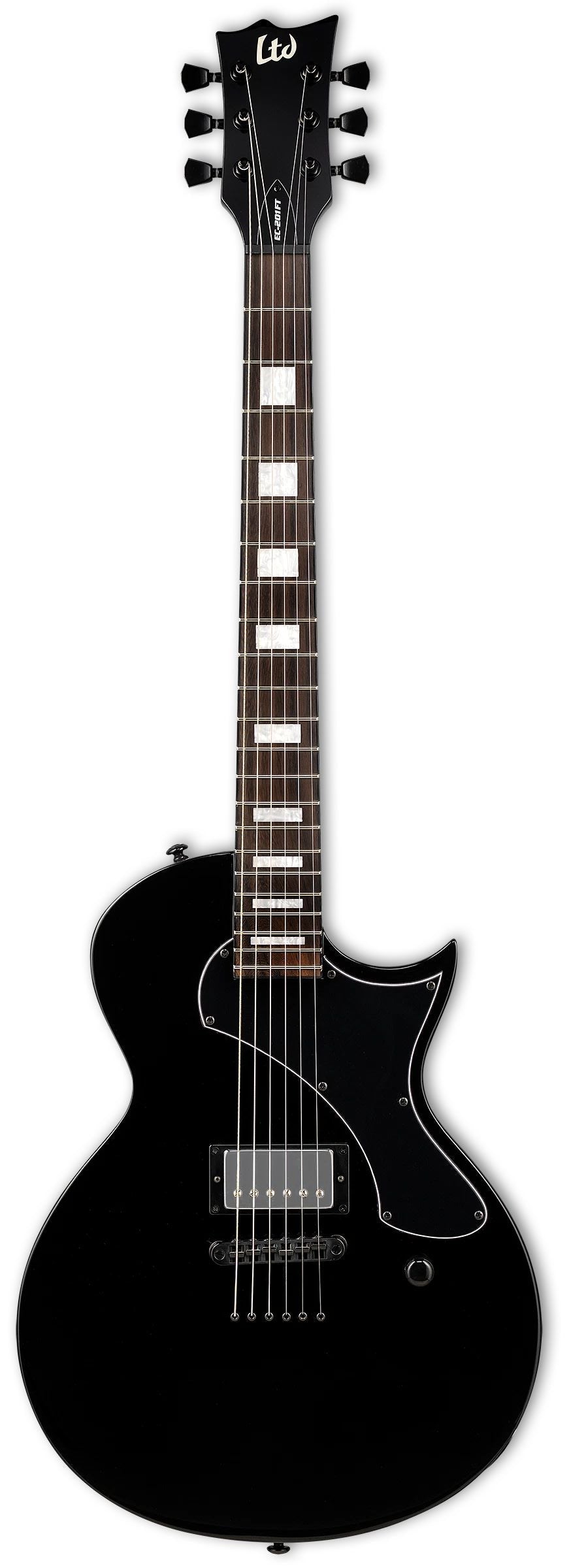 The “FT” in the LTD EC-201FT stands for “flat top”, and that’s what this is: a great-looking, streamlined EC-style guitar that’s built to rock hard. It offers a mahogany body with traditional set-neck construction at 24.75” scale, along with a thin u-shaped three-piece mahogany neck. The EC-201FT’s rosewood fingerboard features black binding, pearloid block inlays, and 22 extra-jumbo frets. A multi-ply black pickguard adds to the look of this great, value-packed guitar. Components on this guitar include a TOM-style bridge with string thru body, LTD tuners, and a single hot, punchy ESP LH-150B humbucking pickup that can be coil-spill via a push-pull control on the master volume.
