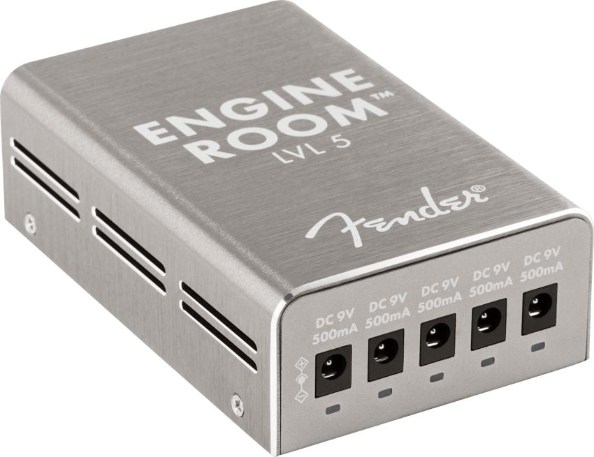 Pedals need clean, isolated power and Fender's Engine Room® LVL5 Power Supply is capable of the task. Featuring five ground isolated power outlets, each outlet is capable of 9Vdc at 500mA to keep your pedals performing at their peak. Works as a standalone power supply for smaller pedalboards or can be daisy-chained with our LVL 12 for those tone fanatics with larger boards.