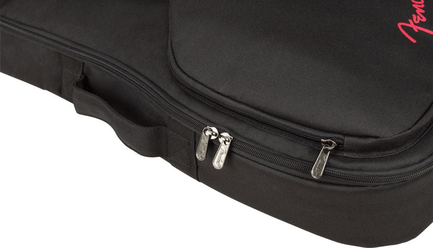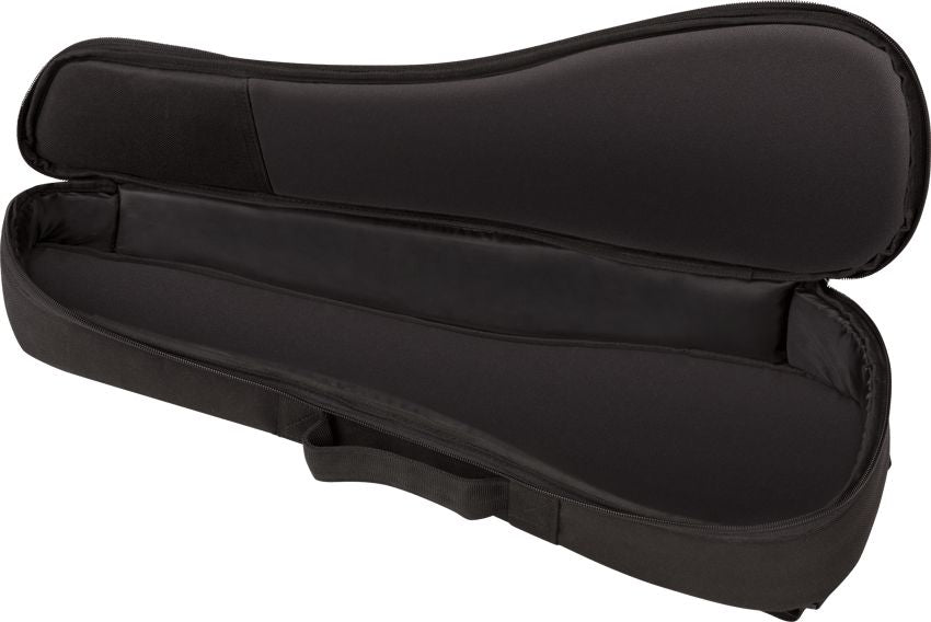 Fender's FU610 Ukulele Gig Bag is a stylish and secure way to keep your uke safe while traveling. Featuring the iconic asymmetrical Fender shape, its durable outer layer is constructed of tough 600 Denier polyester that protects against impacts while avoiding ripping and tearing. Its interior is filled with 10mm padding lined with nylon that keeps your instrument secure while preventing finish damage. The FU610 gig bag also includes a large front pocket and ergonomic backpack straps with easily adjustable ladder lock buckles, so you can comfortably carry your instrument without unnecessary physical strain.