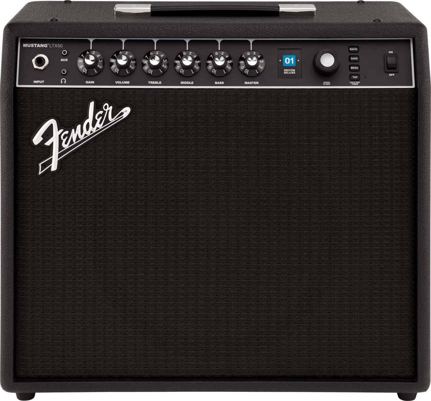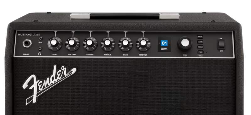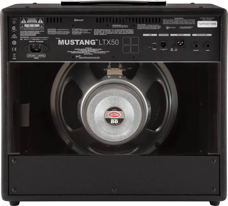 Mustang® LTX 50 is ideal for practice or performance with a 12" Celestion G12P-80 speaker and an optional gig-ready 5-button footswitch. Onboard Bluetooth allows you to jam along with your favorite songs as well as create, edit, download and share presets using the Fender TONE app.
