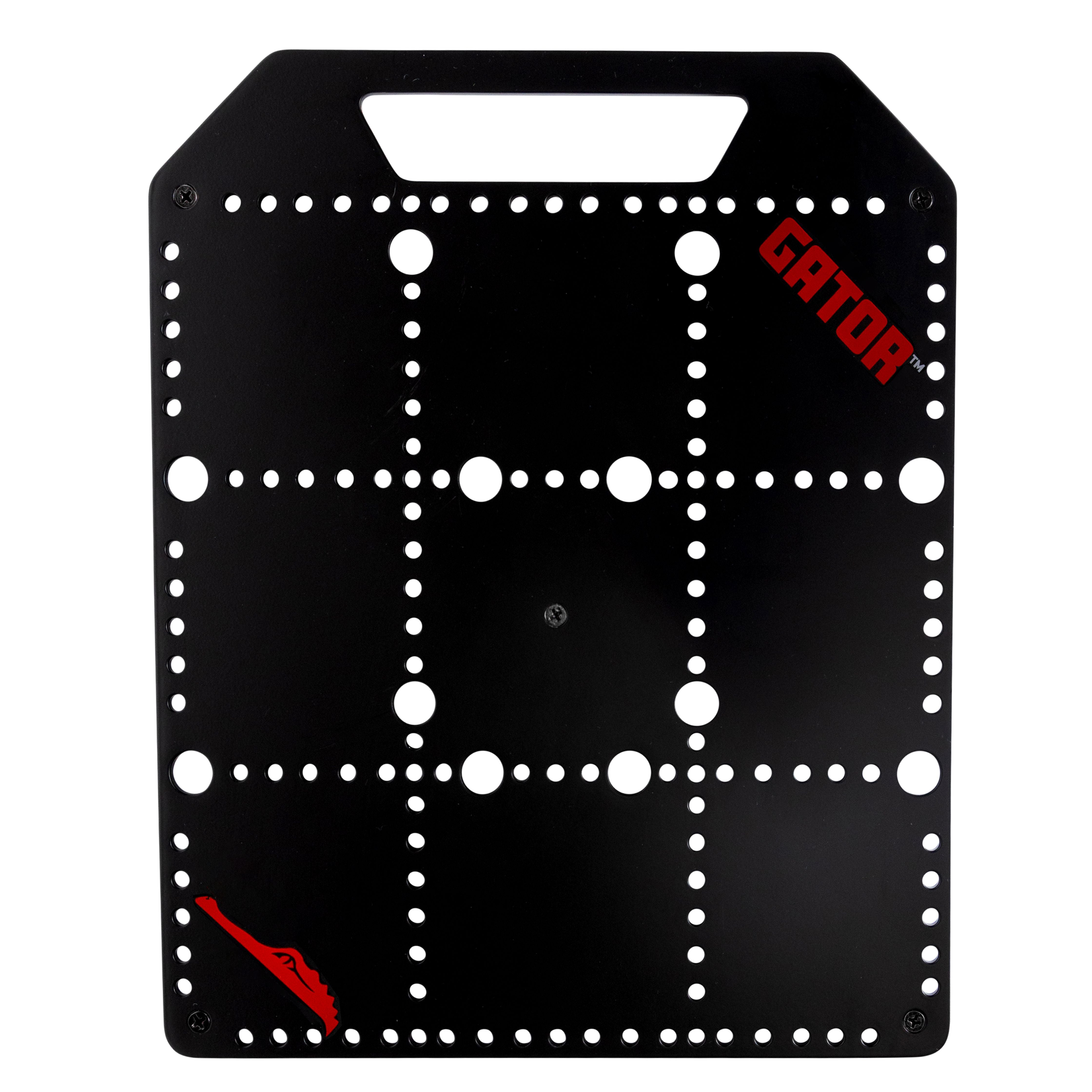The Gator Cases GPB-POCKETBOARD is a compact, yet rugged pedal board designed to fit in the main pocket of most Gator Cases gig bags as well as other popular brands. (pedal surface is 10.75″ X 10.25″) With enough room to hold 6 common-sized pedals or up to 8 mini format pedals this board is perfect for fly-in gigs. The built-in handle makes it easy to get in and out of your gig bag pocket and makes travel much easier freeing up your hands that will no longer need to carry your pedal board separately. The 24 gauge (4.3mm) metal has a pedal surface of 10.75″ X 10.25″ in size and is designed to be configured in landscape or portrait mode.