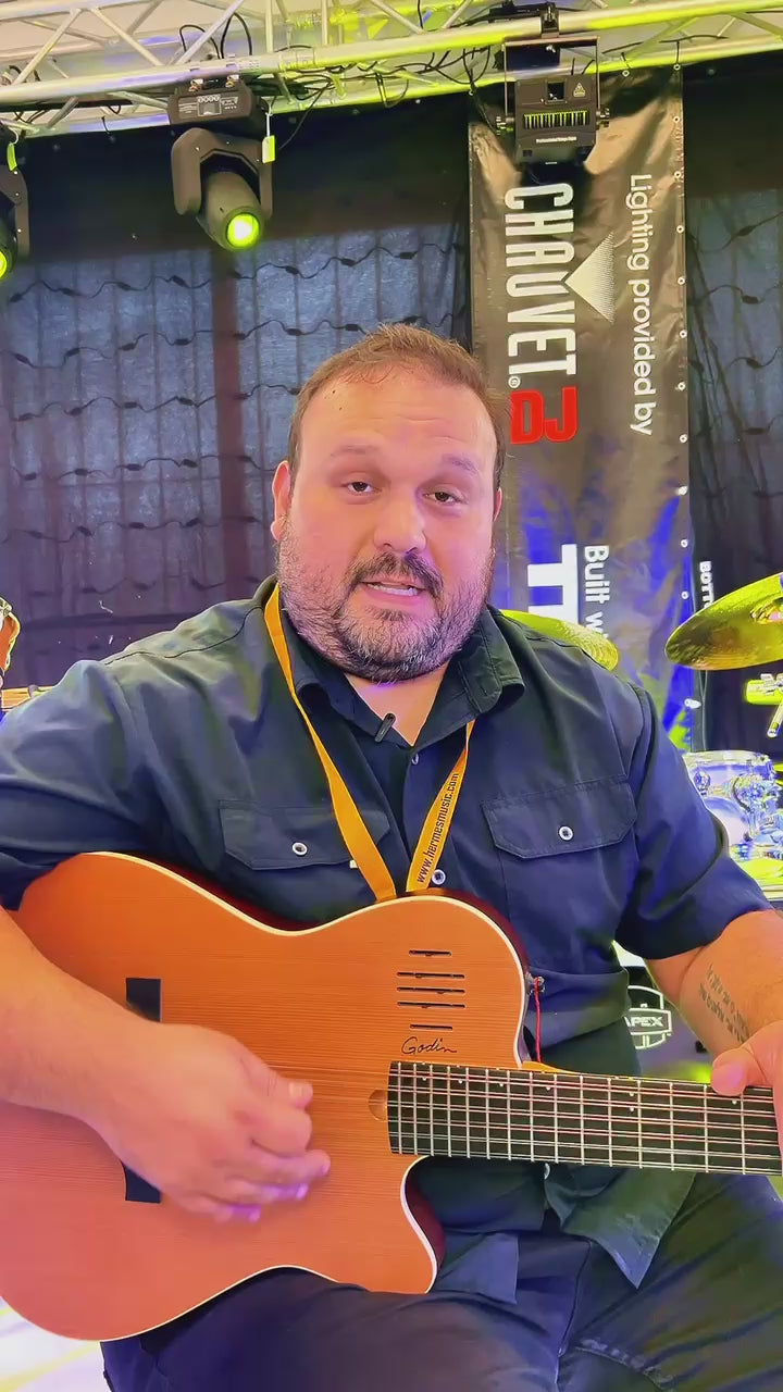 - Custom Godin under-saddle transducer with top mounted pre-amp