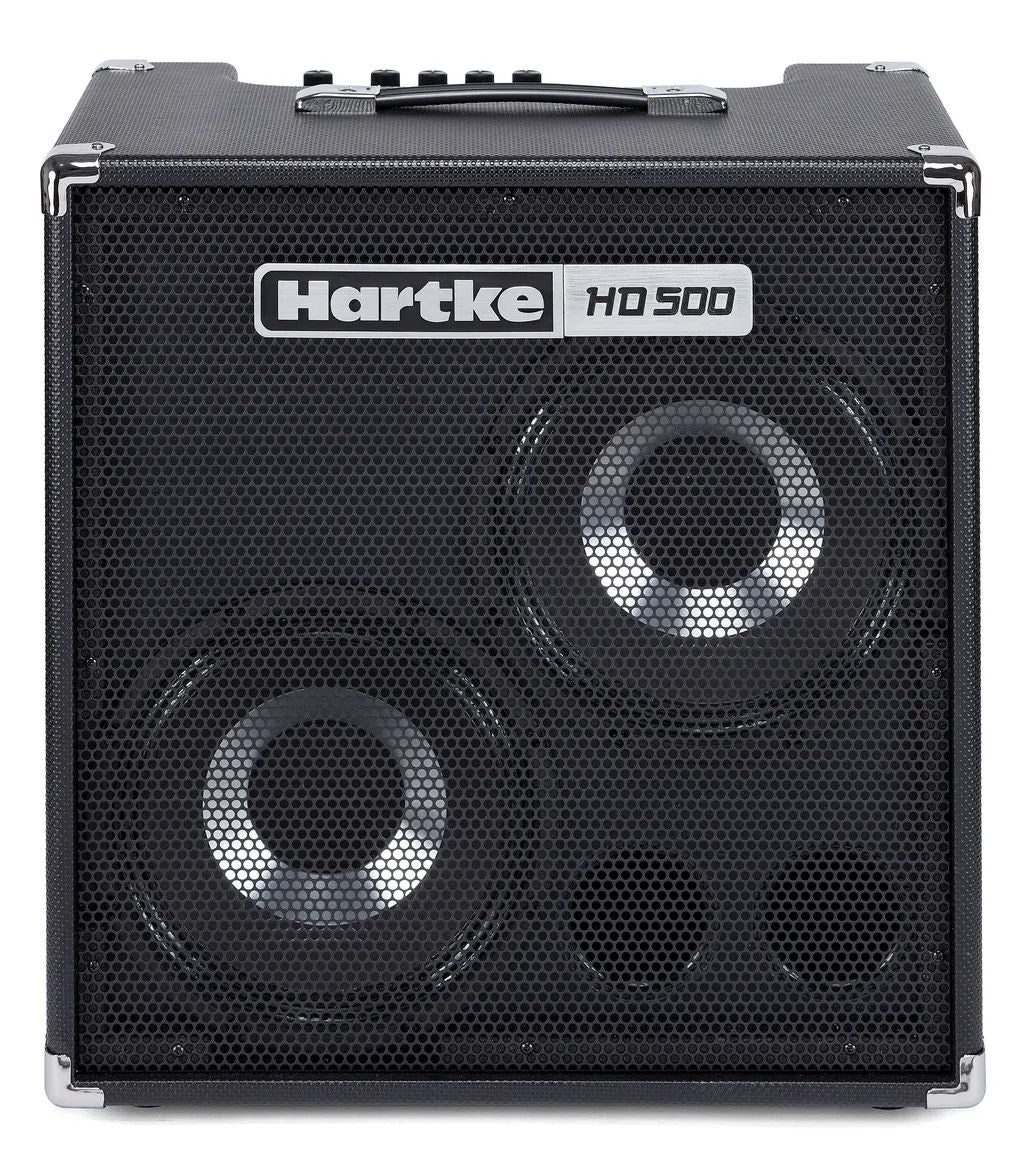 Packing a pair of Hartke's patented 10" HyDrive speakers with neodymium-magnets and a 500-watt Class D amplifier into a sleek, 35-pound cabinet, the HD500 bass combo delivers exceptional bass tone to any rehearsal, stage, or studio.