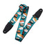 - One-ply printed polyester guitar strap with garment leather vintage ends and vintage logo. Black plastic loop and slide hardware. Adjustable from 35" to 60".