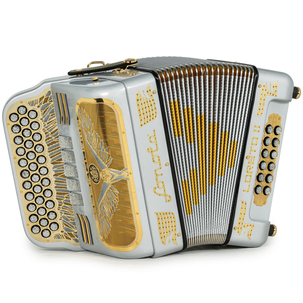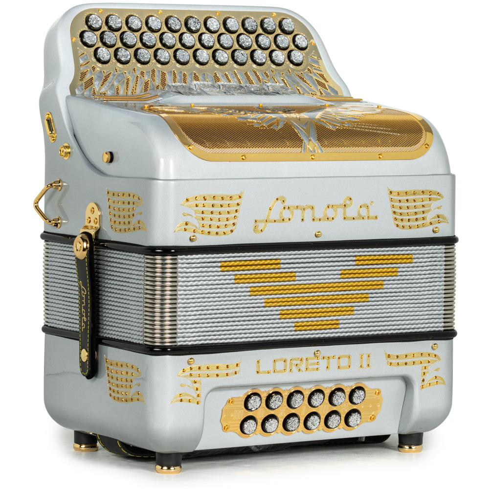 Its finish in modern but elegant designs give it a luxurious image. In addition, all Loreto models have a metal grill with enough opening to be able to offer excellent sound without having to use excessive pressure to the bellows. Not only that, in addition, the mechanical parts of this beautiful instrument are of the highest quality and have been adjusted by professional accordionists to offer you the greatest softness and quick response of the buttons based on your musical performance.