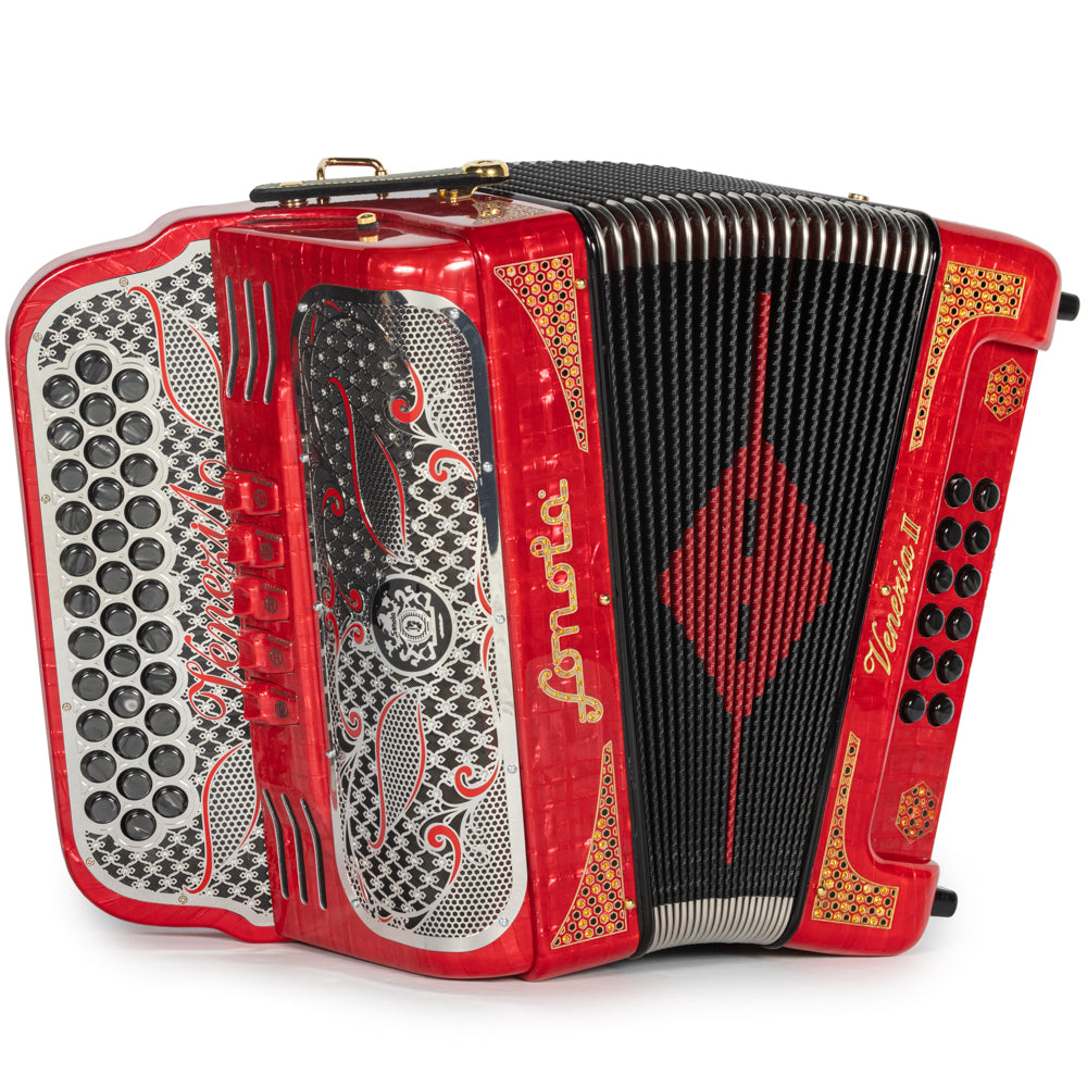 Sonola Venezia II Accordion 5 Switch GCF Celluloid Red Metal With Gold